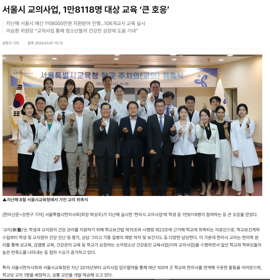 한의사 교의사업 위촉 | 해움한의원