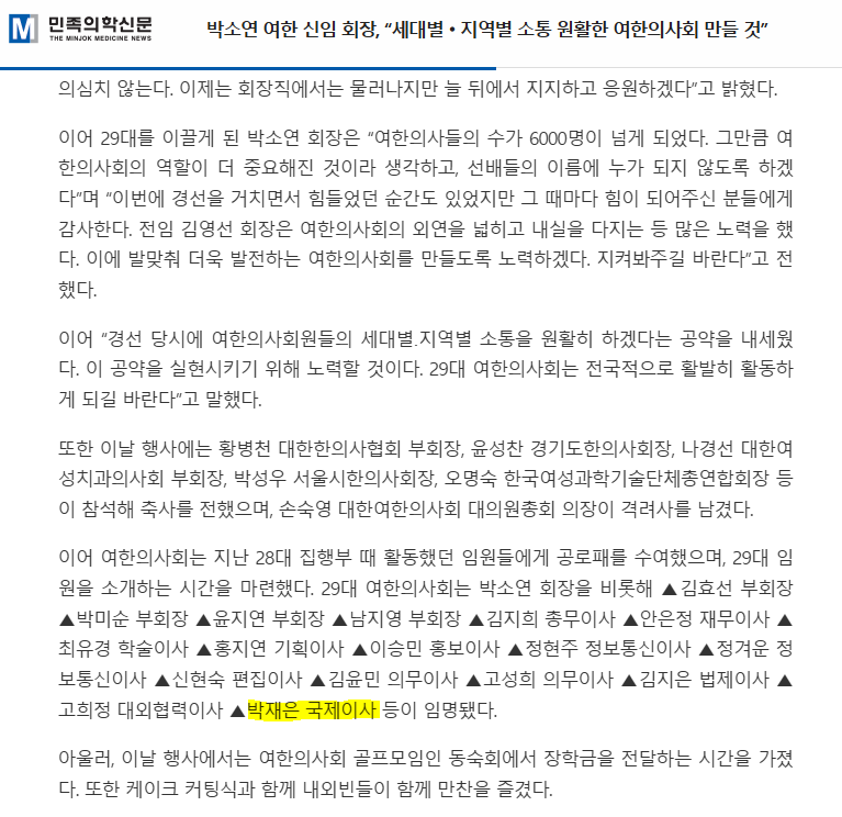 29대 여한의사회 국제이사 임명 | 해움한의원